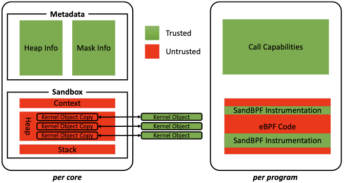 For safety reasons, unprivileged users today have only limited ways to customize the kernel through the extended Berkeley Packet Filter (eBPF). This is unfortunate, especially since the eBPF framework itself has seen an increase in scope over the years. We propose SandBPF, a software-based kernel isolation technique that dynamically sandboxes eBPF programs to allow unprivileged users to safely extend the kernel, unleashing eBPF’s full potential. Our early proof-of-concept shows that SandBPF can effectively prevent exploits missed by eBPF’s native safety mechanism (i.e., static verification) while incurring 0%-10% overhead on web server benchmarks.